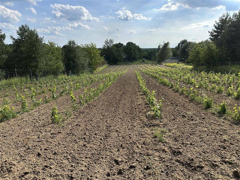 Uprawiamy trzy szlachetne szczepy: Johanniter, Solaris i Souvignier Gris – odporne, aromatyczne i doskonale odnajdujące się w naszym mikroklimacie. Całość prowadzimy w zgodzie z naturą, bez chemicznych środków ochrony roślin – stawiamy na naturalne opryski i zdrowe środowisko.
